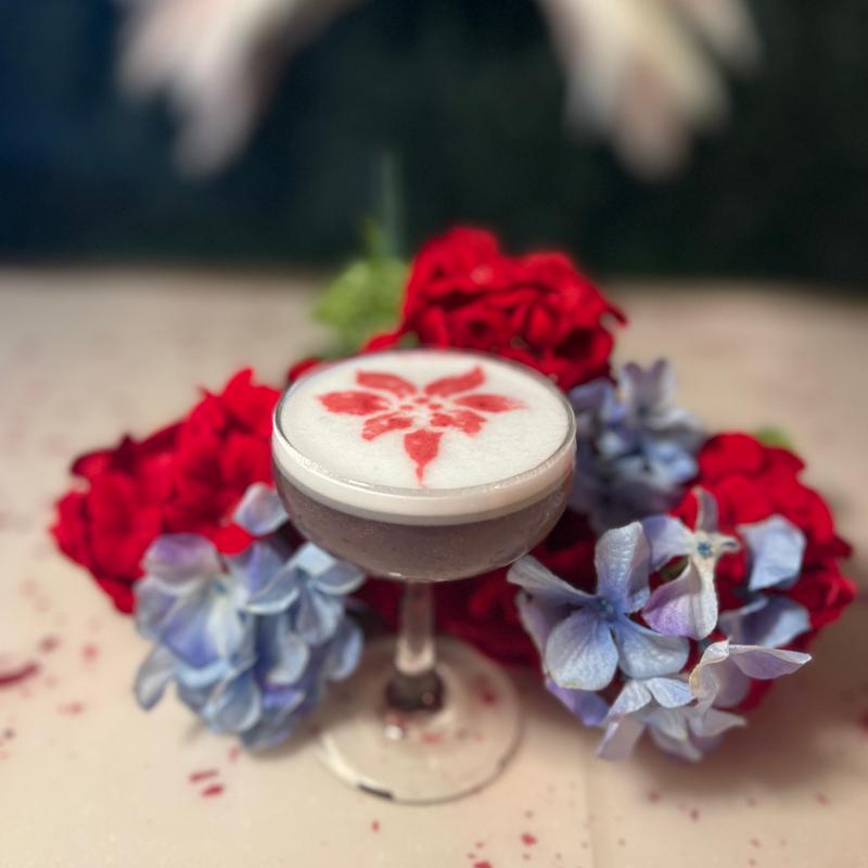 Huckleberry Vodka, Butterfly Pea, Lemon, Egg White, Red Wine Float