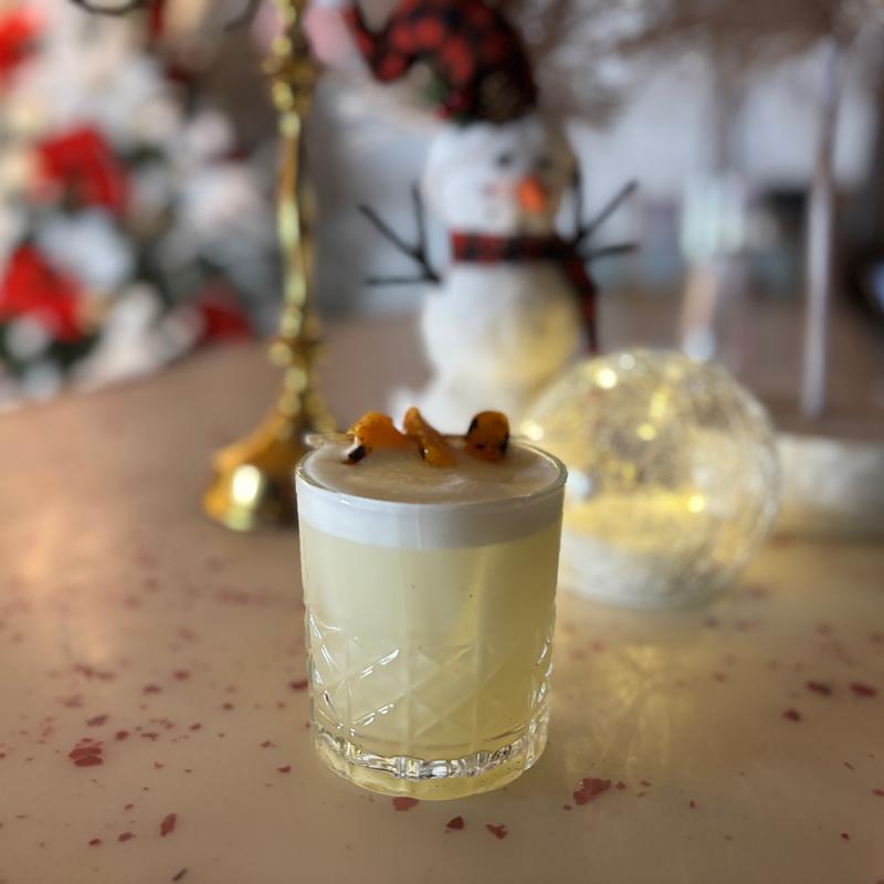 Gin, Lemon, Egg White, Brown Butter Mandarin Syrup